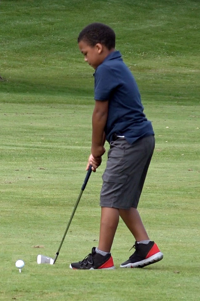 The men chose Minneapolis on Sunday as one of five stops this year for a Tiger Woods Foundation Junior Golf Clinic.